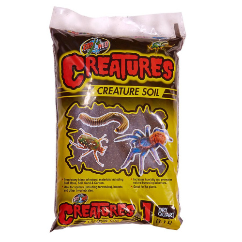 Zoo Med Creatures Creature Soil is a proprietary blend of peat moss, soil, sand, carbon, and other natural materials that provides a safe and beneficial substrate for invertebrates and live plants. It increases humidity and promotes natural burrowing behaviors in spiders, insects, and more.