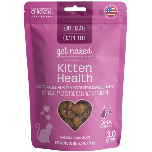 Get Naked Kitten Health Treats are soft, semi-moist treats for young kittens that are fortified with DHA for cognitive development. These delicious treats are made with real chicken and are wheat, corn, soy and petroleum free.