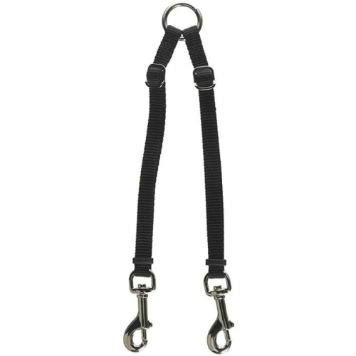 The Coastal Pet Two Dog Adjustable Nylon Coupler in black allows you to walk two dogs at once! Constructed with all metal hardware and sturdy nylon, this coupler easily attaches to the end of a single lead and instantly converts it to a double dog walker. Designed to accommodate several size dogs. Adjust each side independently.