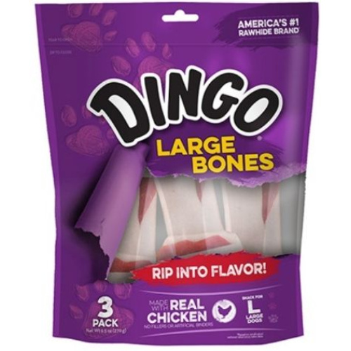 Dingo Large Rawhide Bones are premium, hand-tied chews with the irresistible combination of real chicken breast jerky wrapped in the highest quality rawhide. The delicious flavor, satisfying texture, and natural ingredients have made Dingo Bones a time-tested dog favorite. Buy in bulk for even more savings!