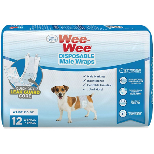Four Paws Wee Wee Disposable Male Dog Wraps - X-Small/Small - 12 Pack - (Fits Waists up to 15")