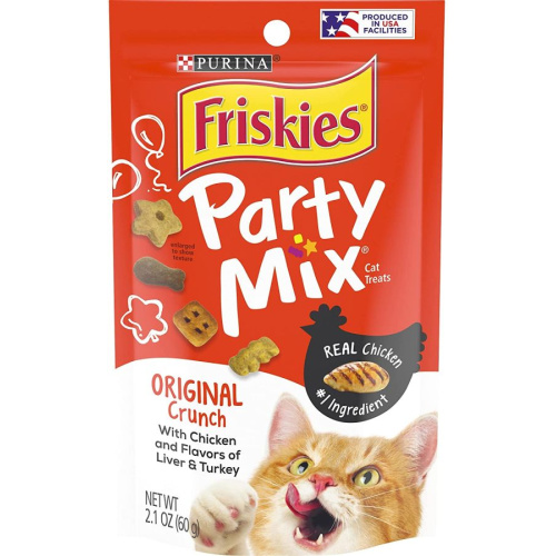 Friskies Party Mix Original Crunchy Cat Treats - 2.1 ozFriskies Party Mix Original Crunch Treats combine chicken, liver and turkey flavors to create a tasty partymix your cat will adore! These treats are jam-packed with flavor and deliver their own unique taste and crunch with every bite.