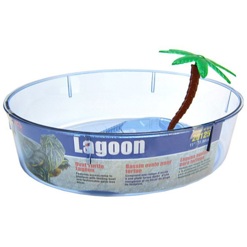 Lees Kidney Shaped Turtle Lagoon is the perfect habitat for small turtles and other small amphibious creatures. Turtle Lagoons come standard with a built-in access ramp ascending to a combination lounging/feeding area and a decorative plant.