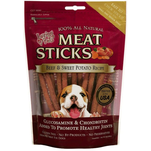 Loving Pets Meat Sticks Dog Treats - Beef & Sweet Potato - 5 ozLoving Pets Meat Sticks are all natural, healthy and delicious chew treats for small and senior dogs. These soft chew sticks are made with no chemical additives, by-products or fillers and contain glucosamine & chondroitin to promote healthy joints.