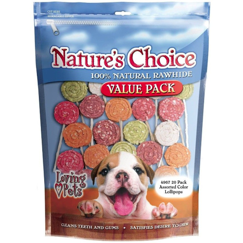 Loving Pets Natures Choice Natural Rawhide Lollipops are 100% natural and fun for dogs to chew. Natural rawhide not only helps satisfy dogs' chewing instincts and prevent destructive chewing, it also helps remove tartar and massage gums for a healthier mouth.