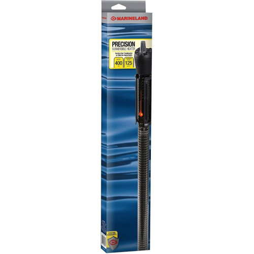Marineland Precision Submersible Aquarium Heater - 400 Watt - 18" Long - (Aquariums up to 125 Gallons)The Marineland Precision Submersible Aquarium Heater offers safe, reliable, highly accurate heating for your fresh or saltwater aquarium. A built-in thermal safety switch accurately regulates the temperature to within 1 degree. The switch also automatically turns the heater off if temperatures exceed internal parameters, and turns it back on when the tank temperature returns to normal. Top and side view temperature scales allow easy viewing from all angles.