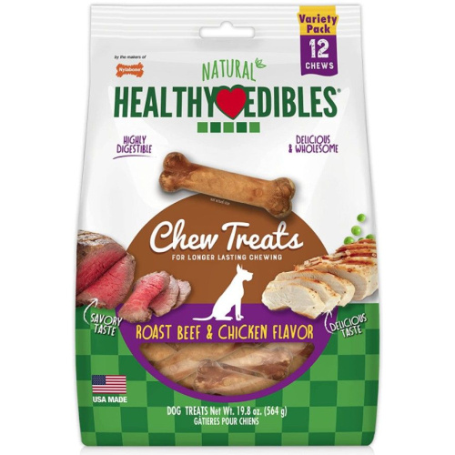 Nylabone Natural Healthy Edibles Variety Pack - Roast Beef & Chicken - Regular - 12 Pack