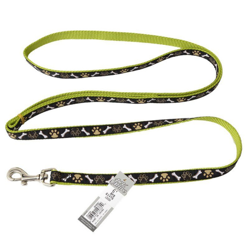 Pet Attire Ribbon Brown Paws & Bones Nylon Dog Leash - 6' Long x 5/8" Wide