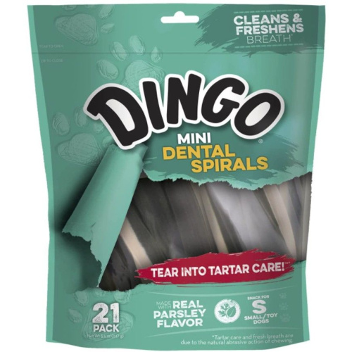 Dingo Dental Spirals Fresh Breath Dog Treats - Mini - 21 Pack