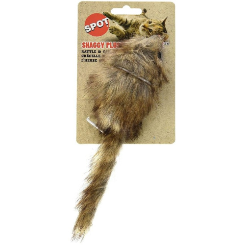 Spots Shaggy Plush Mouse is a fun, furry catnip toy your kitty will love. This toy rattles with movement and makes great prey for your cat to stalk, swat and pounce to her hearts content.