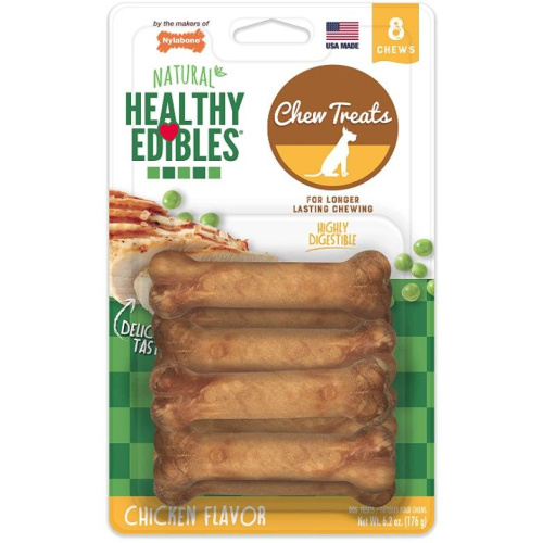 Nylabone Healthy Edibles Wholesome Dog Chews - Chicken Flavor - Petite - 3.75" Long (8 Pack)Natural Healthy Edibles Giant Chicken Flavor Wholesome Chews use a great tasting, gluten-free formula made of natural ingredients with no plastic, no added sugar or salt and no artificial color.