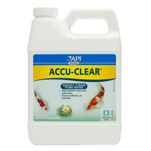 PondCare Accu-Clear Pond - 32 oz (Treats 9,600 Gallons)API Pond Accu-Clear quickly clears floating particles and helps clarify cloudy and murky water to help maintain a crystal clear pond. Accu-Clear helps filters function more efficiently by causing tiny suspended cloud particles in pond water to clump together.